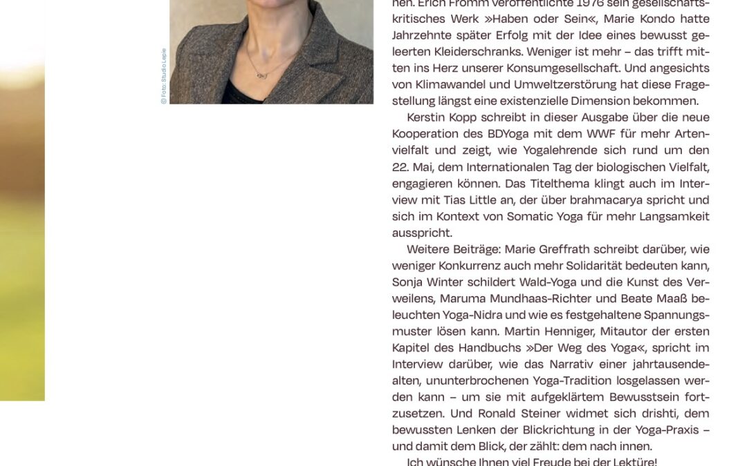 Editorial Deutsches Yoga Forum 2_2026 des BDY von Miriam | Apr. 25, 2026 | Community, Lernen & Lehren, Yoga Philosophie | 0 Kommentare Kommentar absenden Antwort abbrechenDeine E-Mail-Adresse wird nicht veröffentlicht. Erforderliche Felder sind mit * markiertKommentar * Name * E-Mail-Adresse * Website Name, E-Mail-Adresse und Website in diesem Browser für meinen nächsten Kommentar speichern.